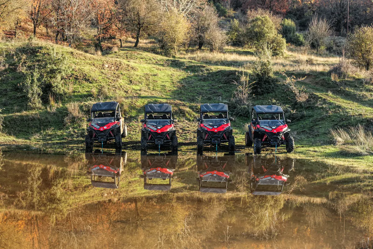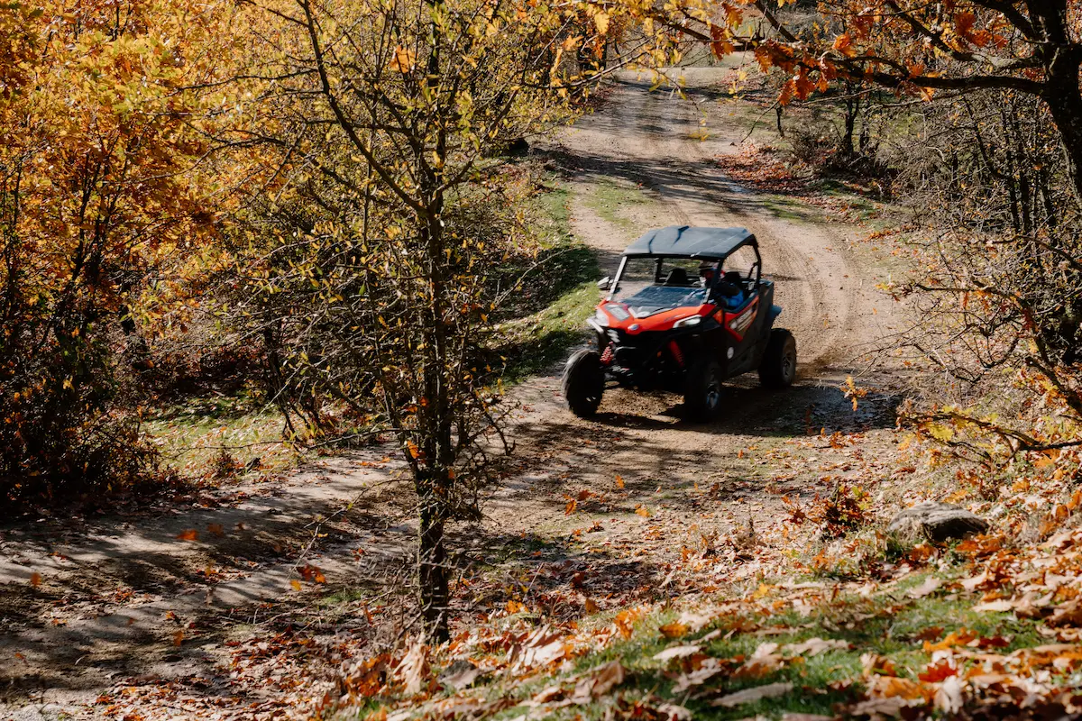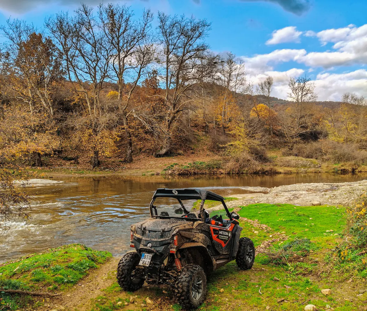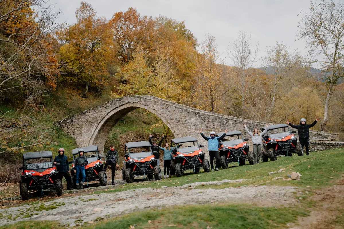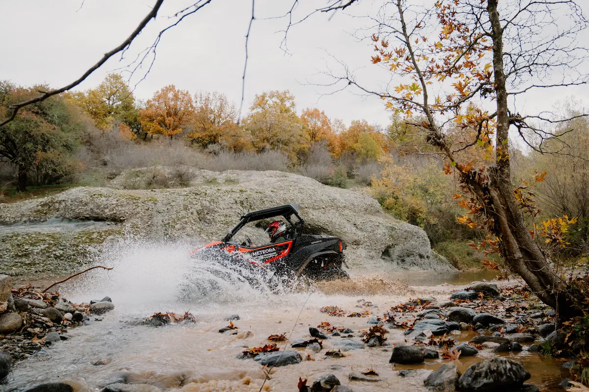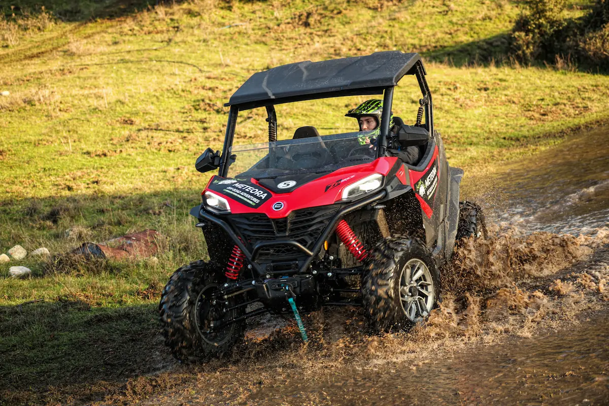 Feel the adrenaline rush of driving your own CF MOTO ZFORCE 800 SxS buggy through the wild heart of the Meteora UNESCO Global Geopark. Follow your local guide along dirt tracks, streams, and the Ionas river, through oak and plane tree forests, hidden cave monasteries, and small ponds. Enjoy panoramic views of Kastraki, Vlachava, and the Pindus Mountains, and discover places no bus or regular car can reach. This is a raw, authentic way to experience Meteora – off-road, in small groups, far from mass tourism.